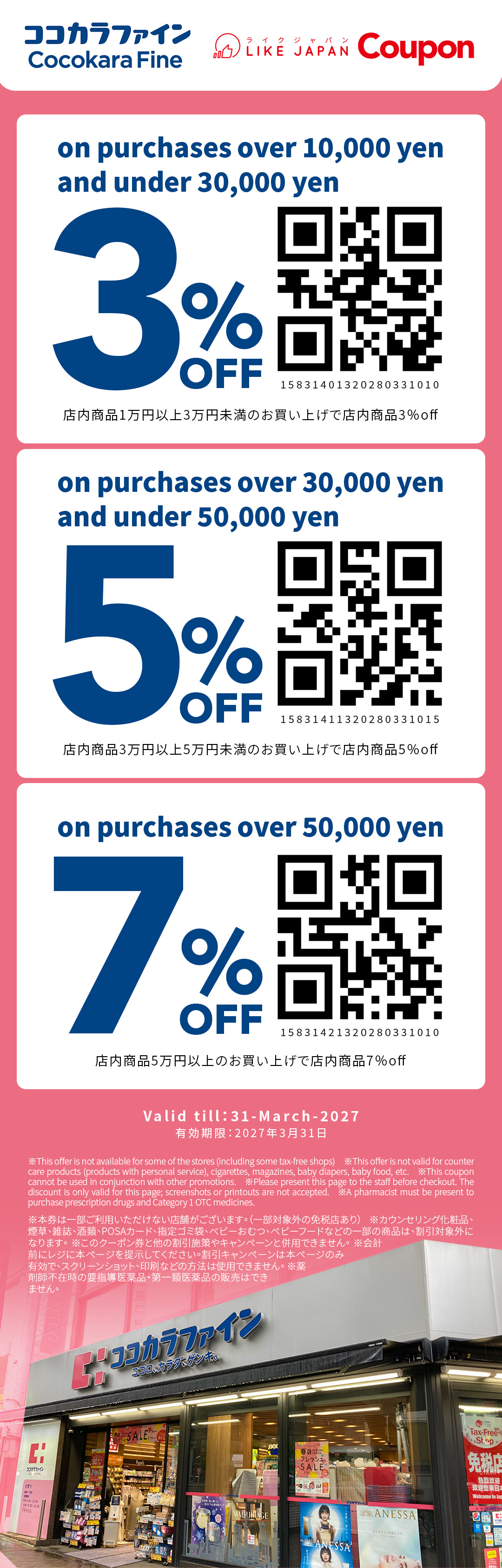 7% OFF on purchases over 50,000 yen